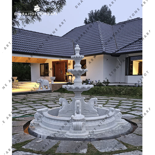 3 Tier Outdoor Large Modern White Stone Marble Garden Water Fountain