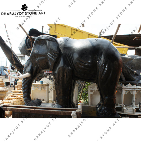 Outdoor Black Stone Indian Elephant Statues