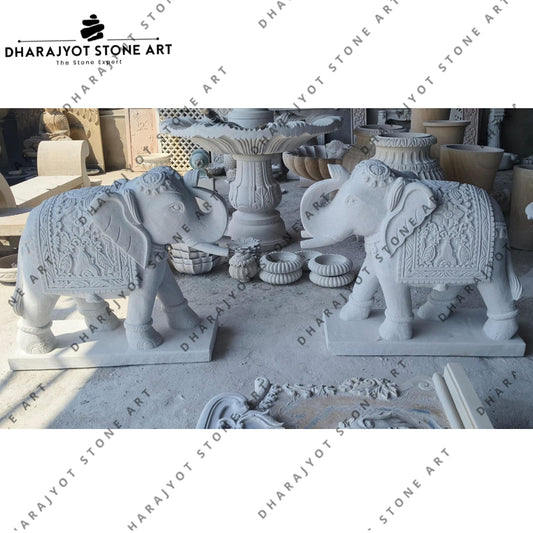 Bungalow Entrance Hand-Carved Large White Marble Elephant Statue