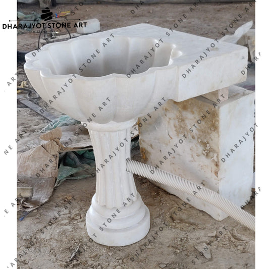 Australian White Marble Stone Pedestal Washbasin