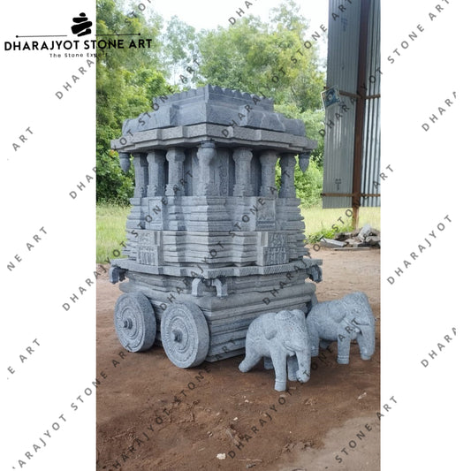 Traditional Ratha Sculpture with Decorative Elephants Indian Stone Art