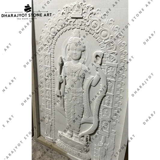 Temple Style Decorative Sculpture Carved White Stone Lord Rama Wall Panel