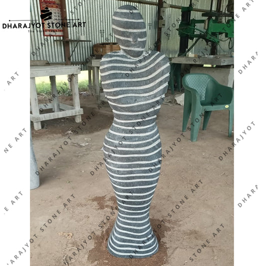 Hand-Carved Striped Natural Stone Outdoor Decorative Modern Art