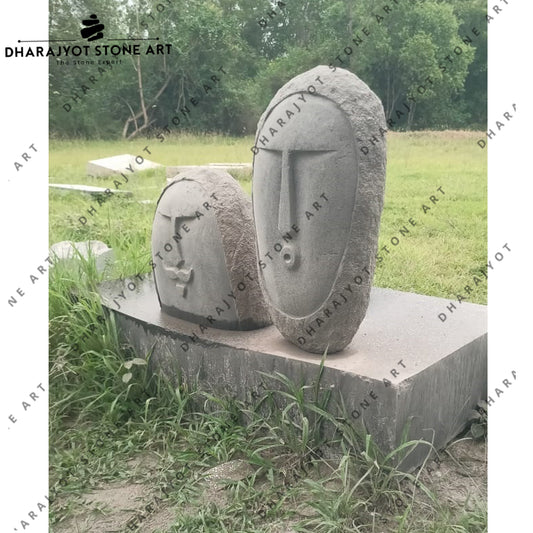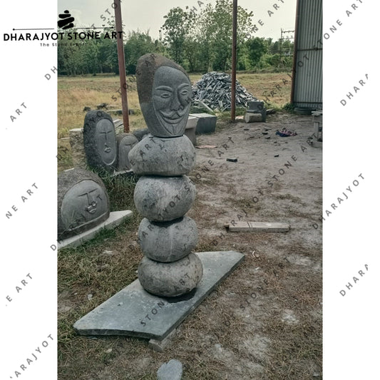 Hand-Carved Stacked Stone Head Outdoor Modern Art