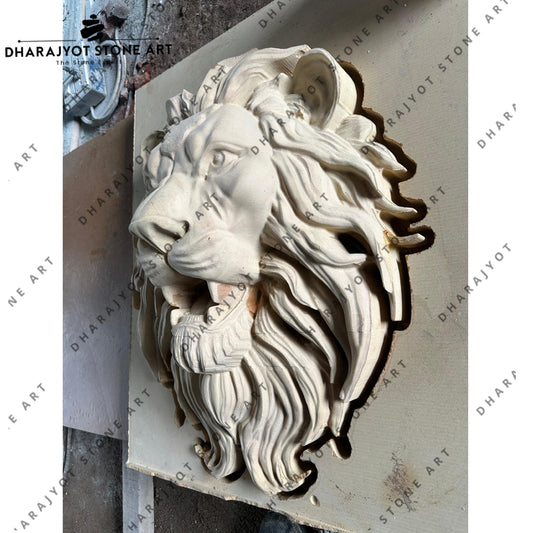 Hand-Carved Natural Stone Majestic Lion Head Wall Hanging