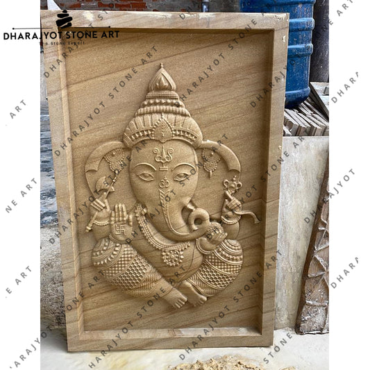 Lord Ganesha Handcrafted Sandstone Wall Mural