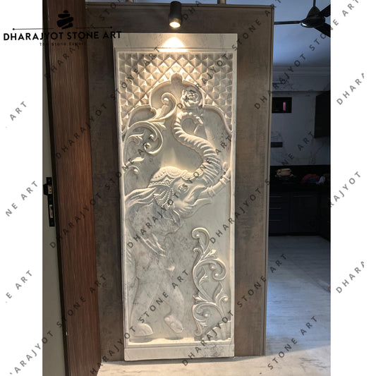 Luxurious Home & Temple Decor Hand-Carved Floral Marble Wall Panel