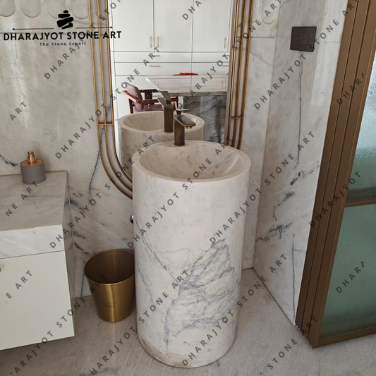 Design Natural Marble Carving Bathroom Pedestal Sink