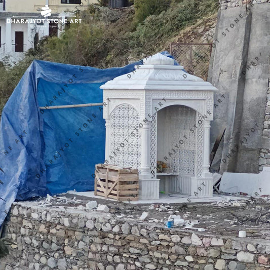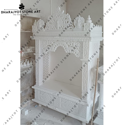 Home Elegant Handcrafted White Marble Temple with Intricate Jali Work