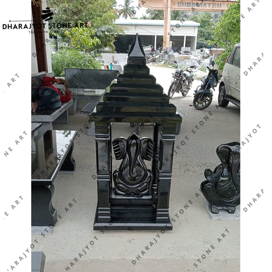 Handcrafted Black Granite Stone Temple with Lord Ganesha Idol
