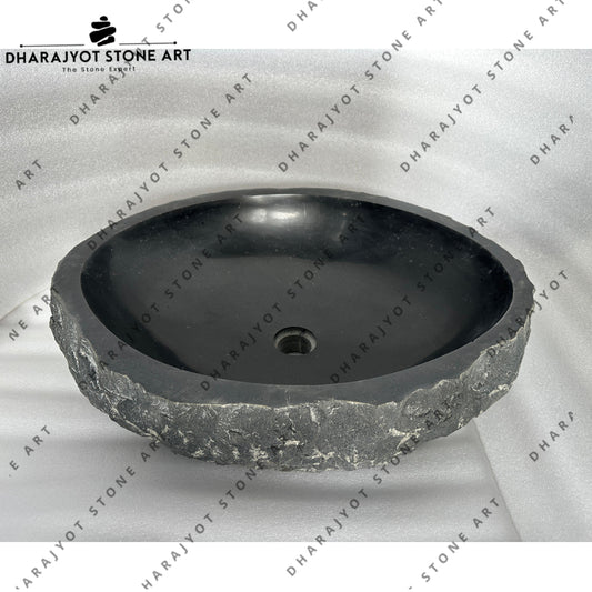 Modern Black Basalt Stone Handcrafted Oval Countertop Wash Basin