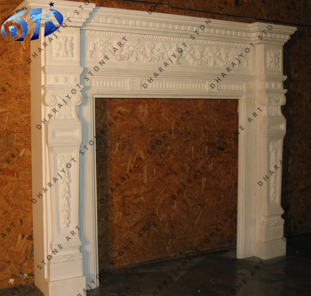 Antique Travertine Stone Hand Carving Marble Fireplace
