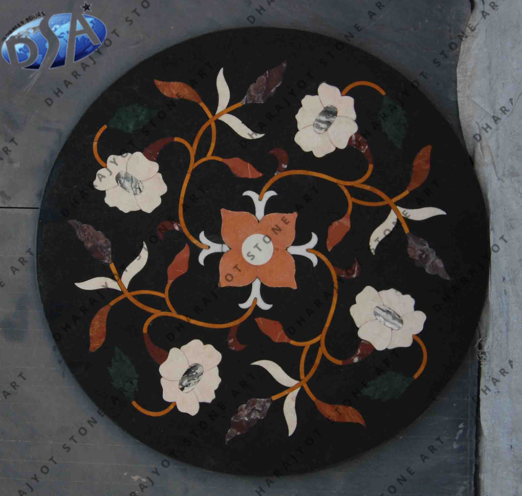 Black Marble Inlay Coffee Table Top