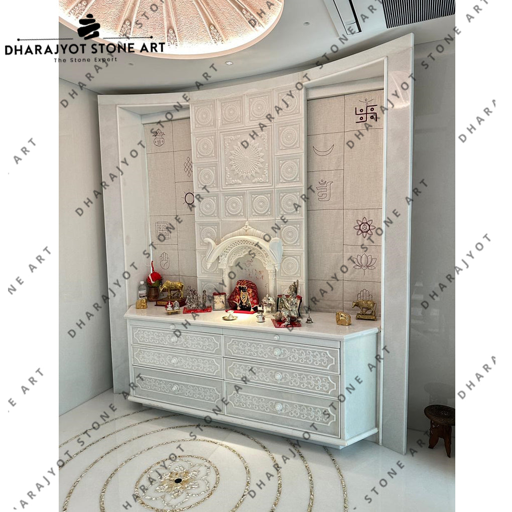 Custom Carved Polished White Marble Handcrafted Home Mandir