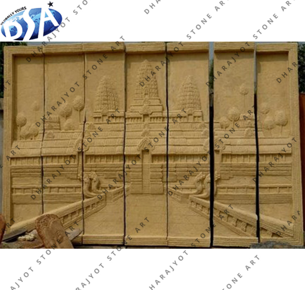 Custom Handcrafted Hand-Carved Stone Temple Wall Mural