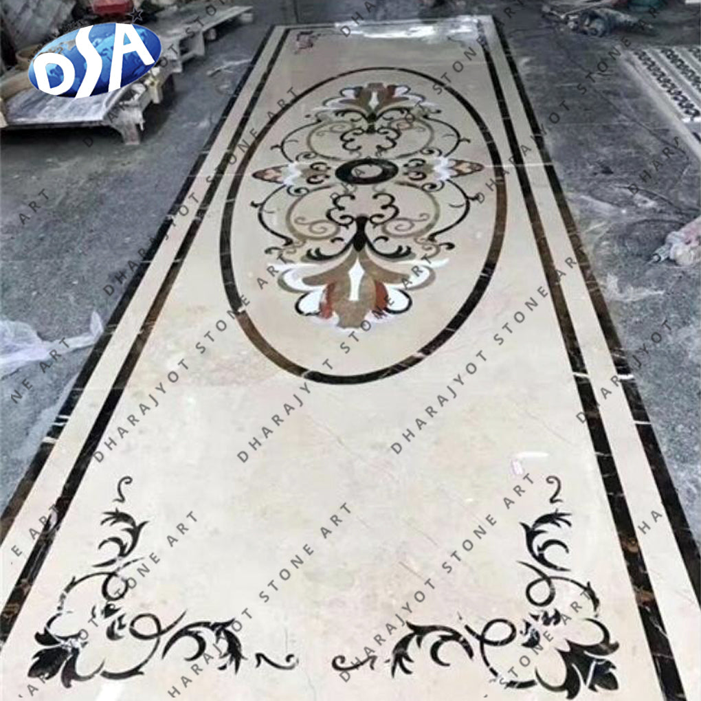 custom luxury brass inlay marble waterjet medallion floor pattern design