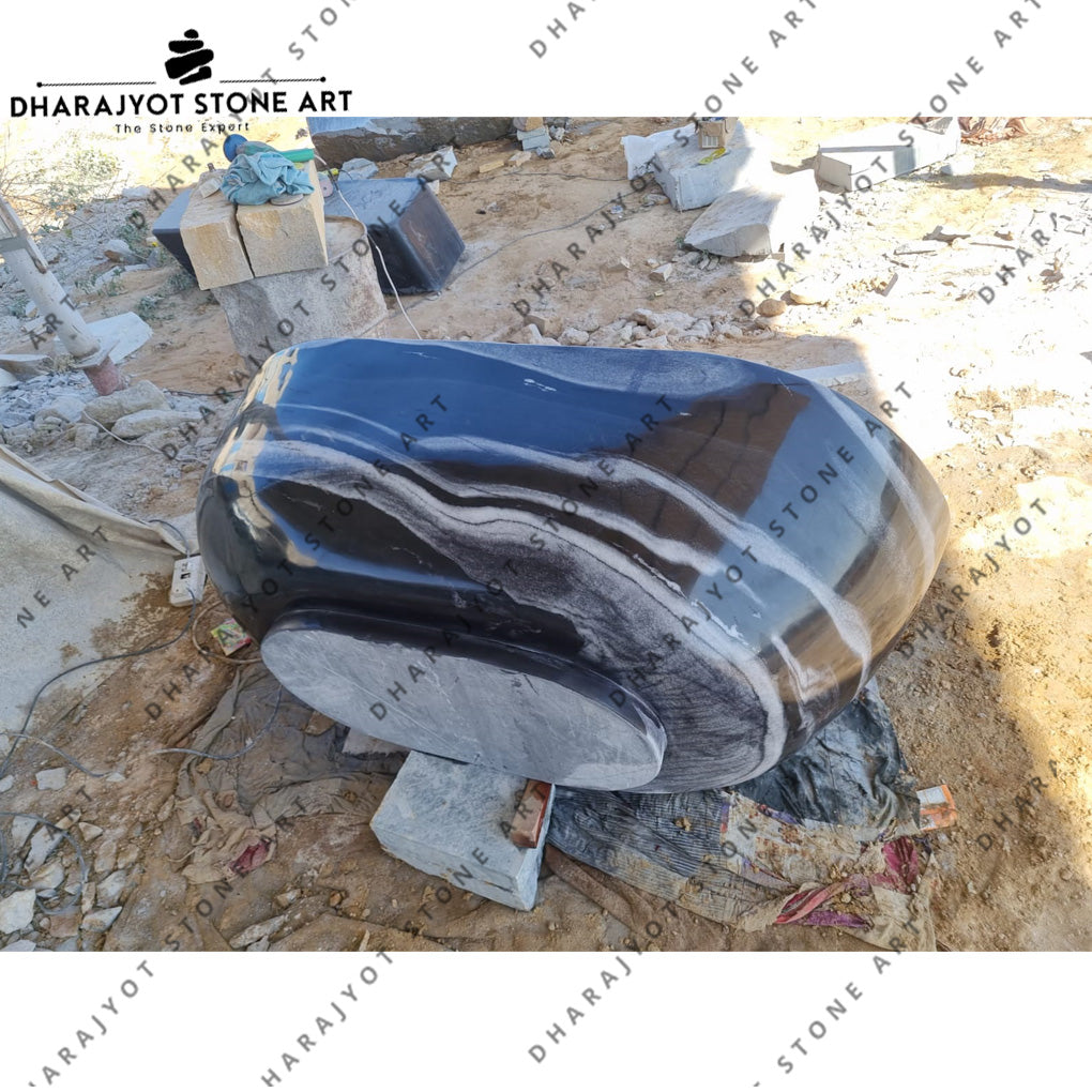 Hand-Carved Black Marble Freestanding Bathtub