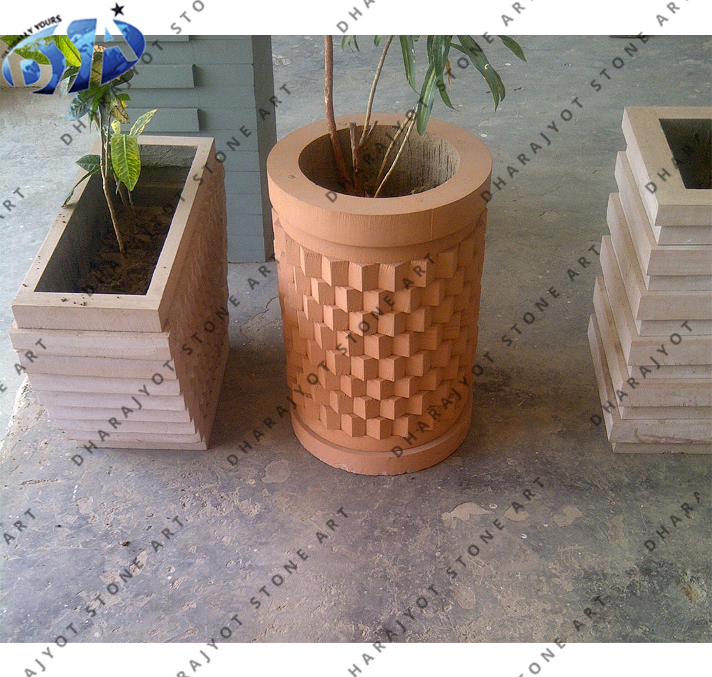 Indoor/Outdoor Decorative Customizable Round Stone Flower Pot