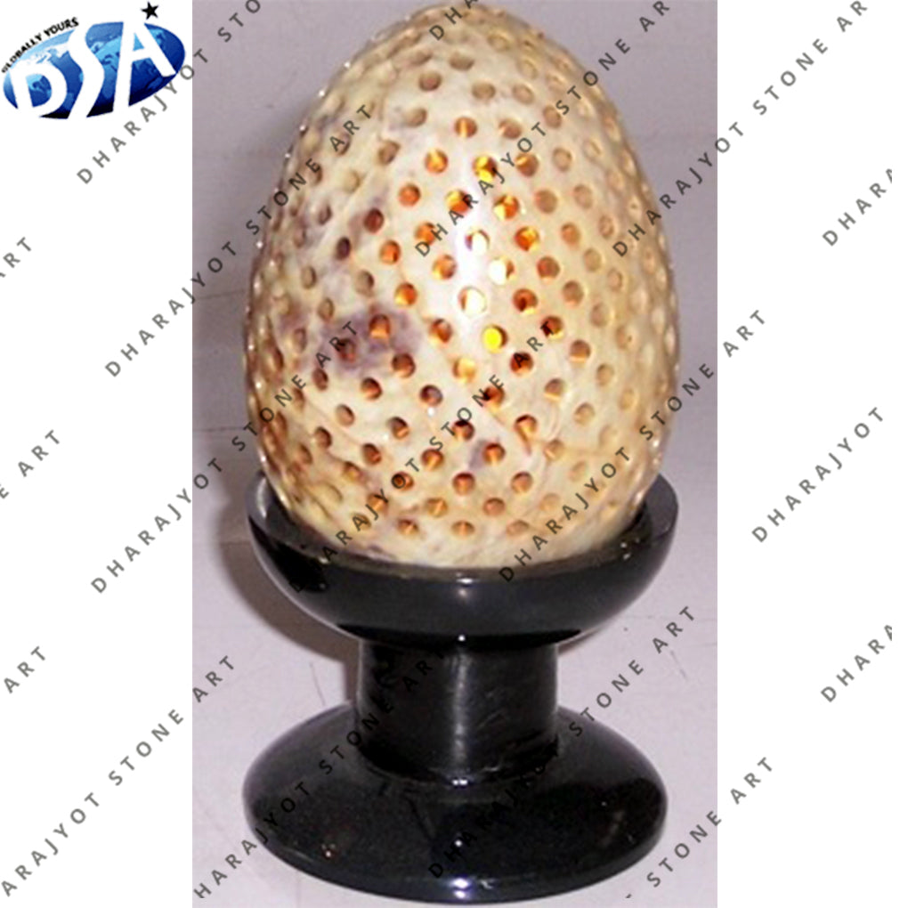 Oval Shaped Stone Jaal Pattern Candle Holder