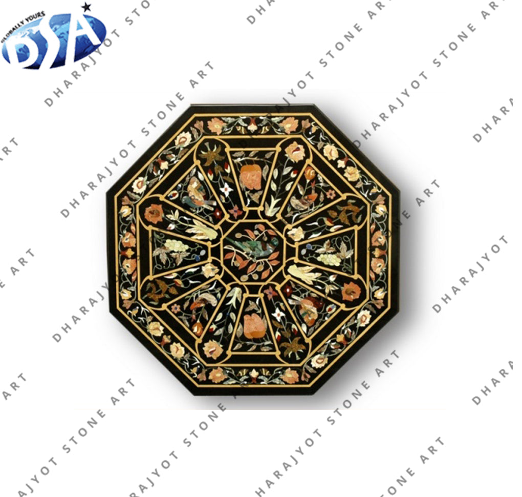Round Marble Antique Design Inlay Work Table Top