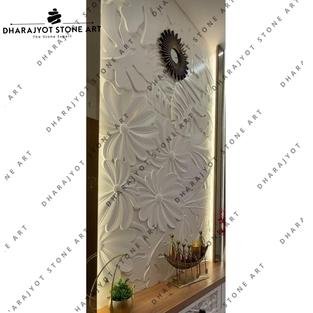 White Stone Polished 3d Work Wall Hanging Panels
